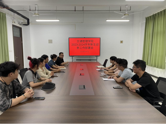 为做实做细交通管理学院2023级新生入学报到工作,确保各项迎新工作顺利开展,9月1日中午,交通学院在建工楼524会议室召开迎新工作部署会。交通学院行政秘书朱帅、全体辅导员以及学生会主要成员参加会议。
