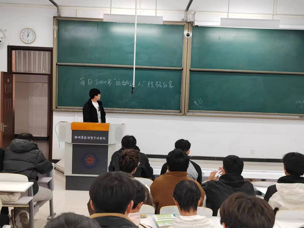 各年级各班级积极开展“每日8000步计划”动员及运动健身达人经验交流分享会。辅导员李爽爽老师讲到:经常运动不仅可以增强身体素质,提高人体的免疫功能,有助于抵抗各种疾病的发生,还可以减轻焦虑程度、缓解心理压力。对于大学生,科学的地进行身体锻炼不仅可以提高运动素质,还可以做到劳逸结合,使智力水平得到充分的发挥。