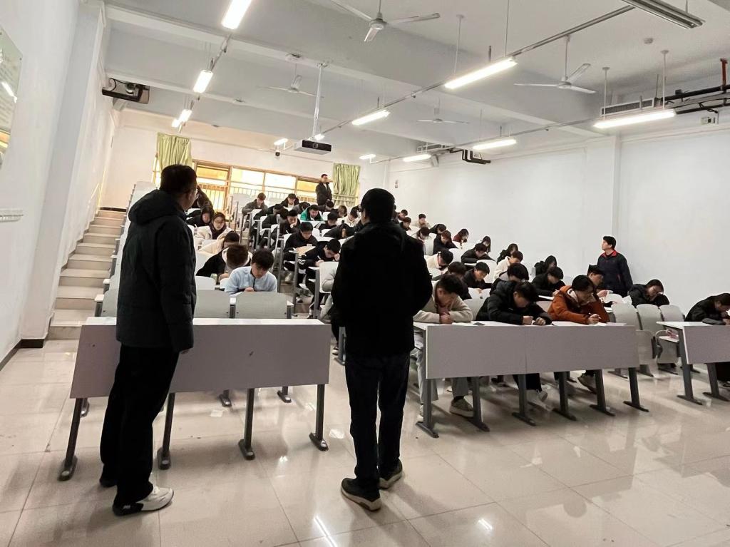1月8日,我校2023-2024学年第一学期期末考试拉开帷幕。为进一步加强期末考试组织管理,严肃考风考纪,期末考试期间,9428cn太阳集团直属党支部书记陶金仓、行政秘书朱帅、教学秘书丁向育深入期末考试现场开展巡视检查工作。