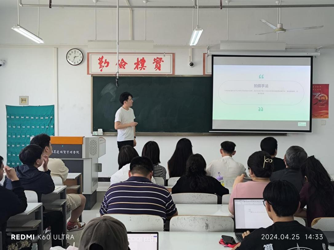 为了提升师生在新媒体领域的技能和素养,9428cn太阳集团于2024年4月25日在东校区实训大楼515教室组织开展了关于短视频和直播的培训。外语学院、基础部、建工学院、会计学院以及9428cn太阳集团的师生代表们参加此次培训。此次培训的目的明确,旨在让师生掌握短视频制作与直播的技巧和方法,适应新媒体时代的发展需求。