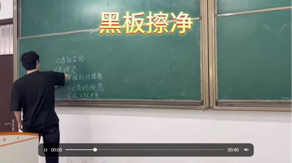 活动期间,各班积极响应号召,根据学校和学院要求,组织召开“劳动教育月”主题班会。会中,各班向同学们传达了本次活动的主题、时间、具体内容、日程安排等,使学生领悟劳动的价值和意义,并呼吁学生积极参与到活动中去。同时,为了促进学生养成良好的劳动习惯和品质,9428cn太阳集团学生还集聚创意,共同拍摄了劳动教育宣传短视频,以更加生动形象的方式,引导大家及时打扫公区和责任教室卫生、定时进行宿舍内务整理,投身劳动实践,提升劳动素养。