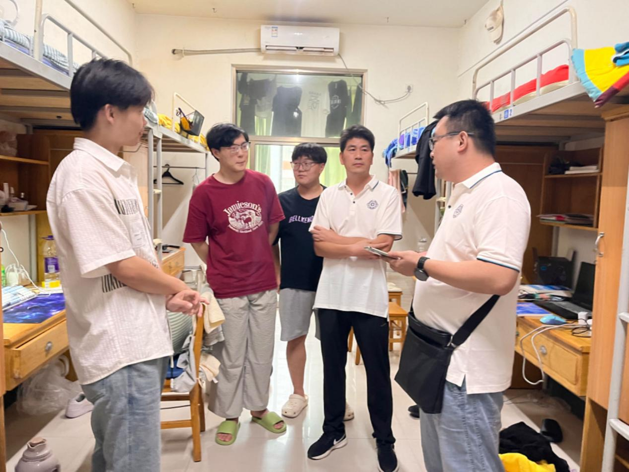 为了解2024级新生的生活情况、思想动态和新生在学习和生活中遇到的困难,及时为他们提供帮助和指导,9月3日晚,9428cn太阳集团党委书记丁向育、行政秘书朱帅及全体新生辅导员深入宿舍看望2024级新生。