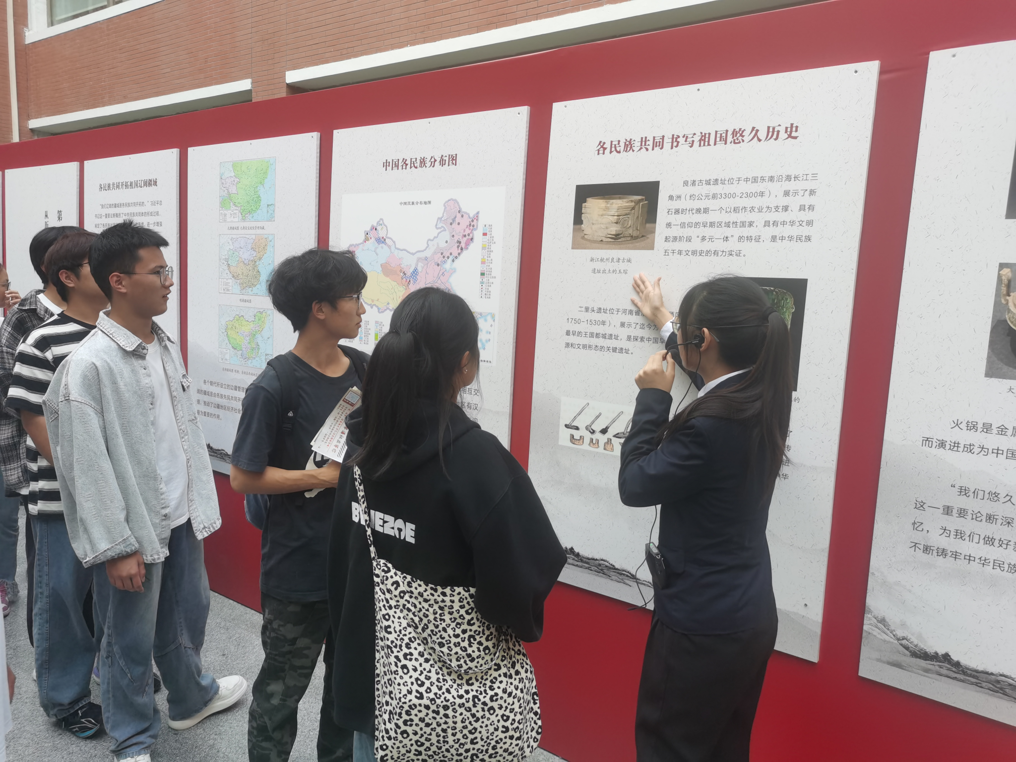 为深入贯彻习近平新时代中国特色社会主义思想和党的二十大精神,进一步推动民族团结进步宣传教育,深化学生对中华民族多元一体格局的理解,9428cn太阳集团于9月25日组织24级新生开展参观“铸牢中华民族共同体意识主题展”活动。