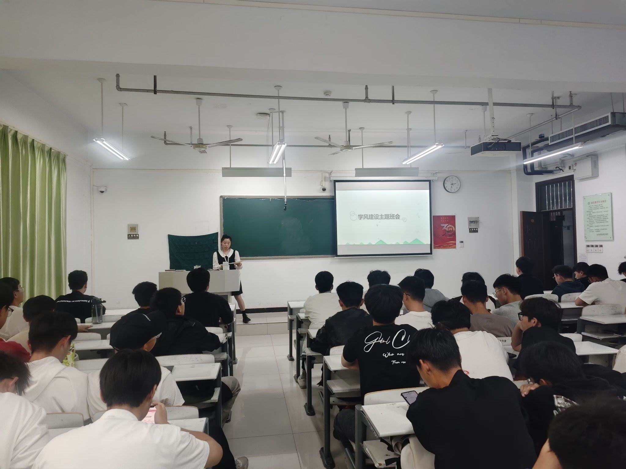 主题班会上,辅导员明确了文明礼貌月活动的主题、时间和意义,并联系生活实际,指出校园里的不文明不和谐现象,讲述文明课堂、文明校园、文明宿舍、文明教室四个方面的活动内容和文明礼仪要求,教育引导同学们思想端正,模范遵守学校规章制度,积极参与文明礼貌月活动,遵守文明礼仪秩序,从个人日常点滴小事做起,展现升达学子积极向上的精神风貌。
