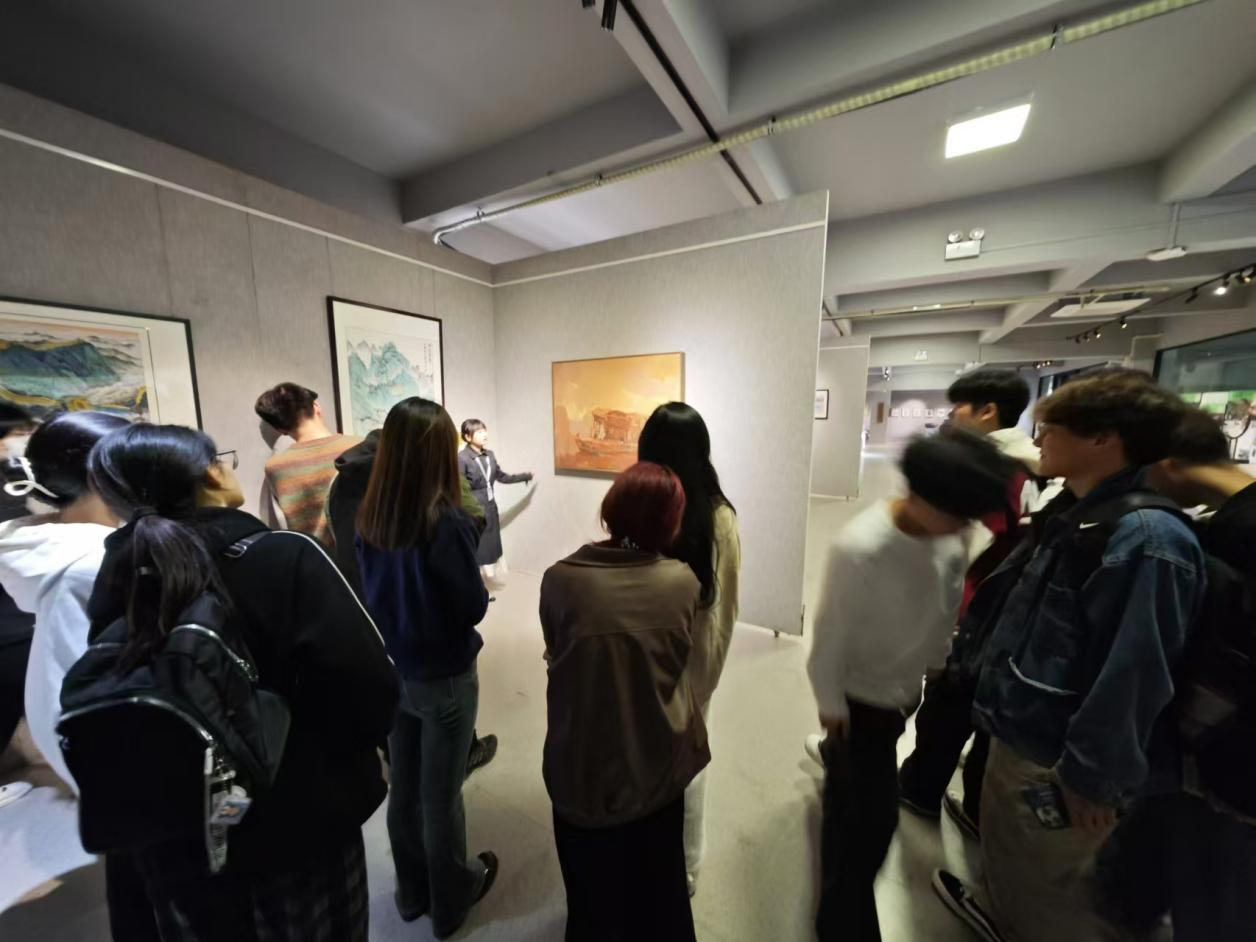 展览作品涵盖书法、绘画及摄影等多种艺术形式,作品内容丰富,主题鲜明,展现了中华民族多元文化的融合与发展。参观过程中,同学们跟随讲解员,认真观看每一幅作品,并积极参与讨论,深入交流各自的感受和理解。