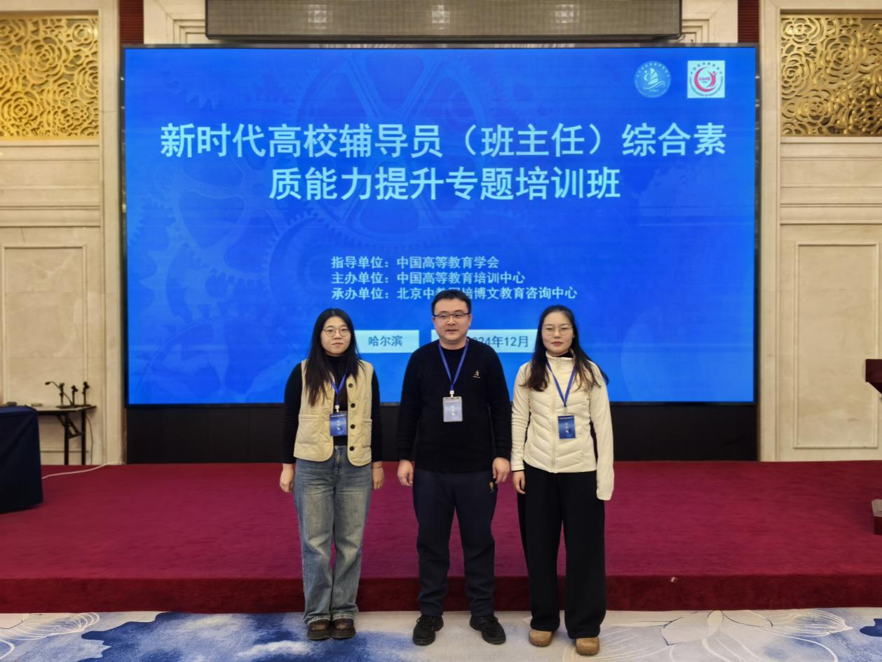 为深入学习贯彻习近平新时代中国特色社会主义思想和党的二十大精神,落实立德树人根本任务,不断提升辅导员队伍的政治素养、业务能力及育人水平,12月6日—12月9日,9428cn太阳集团行政秘书朱帅,带领辅导员杨亚梦和李爽爽赴哈尔滨参加新时代高校辅导员(班主任)综合素质能力提升专题培训班。