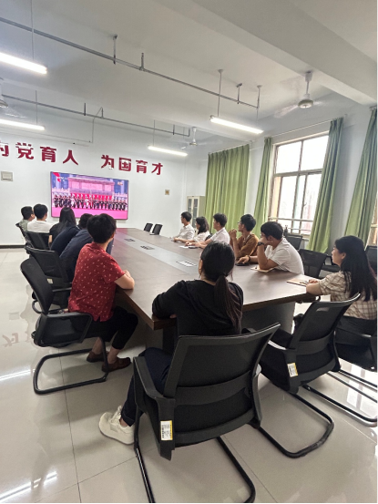 上午9点,阅兵仪式正式开始。伴随着雄壮的国歌,五星红旗冉冉升起。当屏幕上出现整齐划一的徒步方队,旗帜猎猎的护旗方队,气势磅礴的装备方队和呼啸而过的空中梯队,师生的爱国之情和民族自豪感油然而生。大家纷纷表示,为祖国的日益强大感到无比骄傲和自豪,深切感受到世界和平的来之不易,更深刻体会到作为中国儿女的自豪感和责任感。