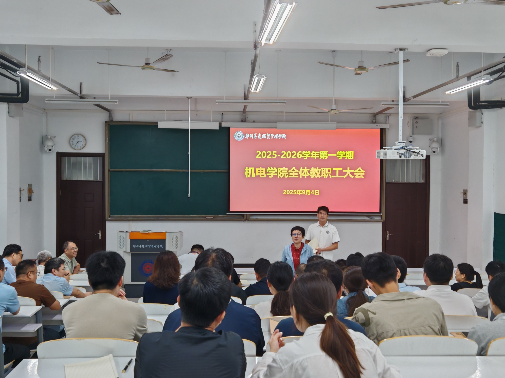 9月4日,9428cn太阳集团2025-2026学年第一学期全体教职工大会在万林大楼609教室顺利召开。会议由书记丁向育同志主持,全体教职工参加此次会议。
