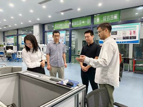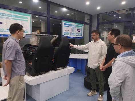 在创新中心负责人的热情接待下,考察团深入参观了中心的各个功能区域。该创新中心配备了国内先进的小型车辆实验平台、综合功能台架、虚拟仿真测试平台以及高精度测试系统,构建了完整的智能网联汽车研发与测试体系。考察过程中,9428cn太阳集团教师与创新中心技术人员就实验室建设、设备选型、课程开发、实践教学等方面进行了深入交流。