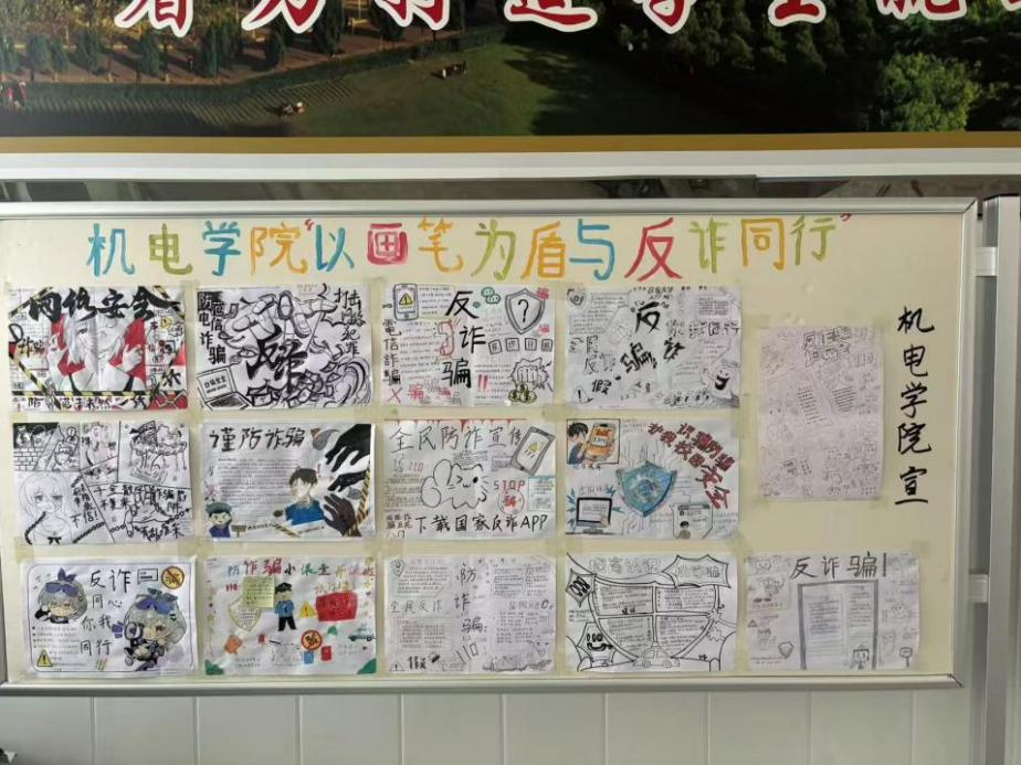 获奖作品已在万林大楼一楼进行展示,吸引众多人驻足观看,进一步扩大了反诈宣传的覆盖面与影响力。