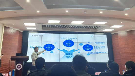 在赛事介绍环节,汇川技术校企合作总监王立军详细解读了第三届“汇川杯”全国智能自动化创新大赛的整体安排。本届大赛共设产业公关、创新开发、工程应用三大赛道,其中工程应用赛道下设AI视觉检测系统设计与开发、未来制造数字孪生系统设计与开发、工业自动化智能控制设计与应用三个具体赛题,旨在全面考察学生在智能制造领域的理论功底与创新能力。王立军总监还就参赛对象、赛程安排、奖项设置等事项进行了说明,并热情欢迎全国各高校师生积极报名参与。