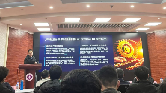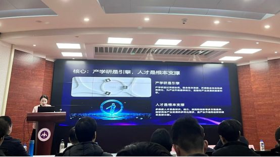 在主题报告环节,中晟华越科技有限公司首席研发执行官杨玉苹以“产学研共创:产业体系升级与多维度人才发展研究”为题,系统阐述了“产、学、研、用”深度协同对推动产业体系高端化、智能化、绿色化升级的重要意义。她指出,产学研是推动发展的引擎,而具备知识、能力、实践与创新相融合的多维度人才则是产业升级的根本支撑。同时,她还介绍了中晟华越与汇川技术合作共创的技术项目及相关设备,为与会教师提供了丰富的实践案例。