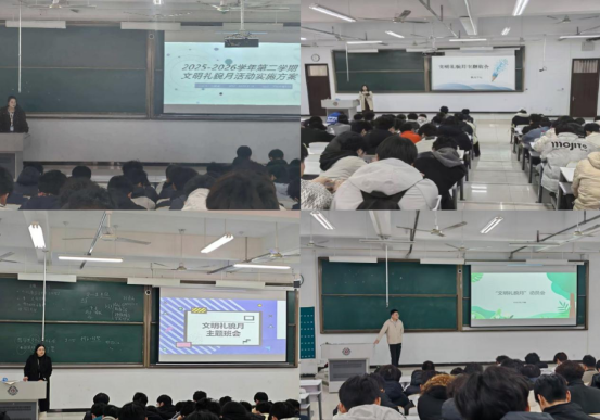 工作布置会结束后,各班级辅导员第一时间响应学院号召,相继召开文明礼貌月主题班会。班会现场,辅导员们带领学生学习《太阳集团2025-2026学年第二学期文明礼貌月活动实施方案》,重点解读健康校园、文明课堂、文明宿舍、健康身心、规范交通五大板块的具体要求,涵盖校园日常礼仪、课堂纪律、宿舍安全、交通规范、心理健康等与学生学习生活密切相关的内容。