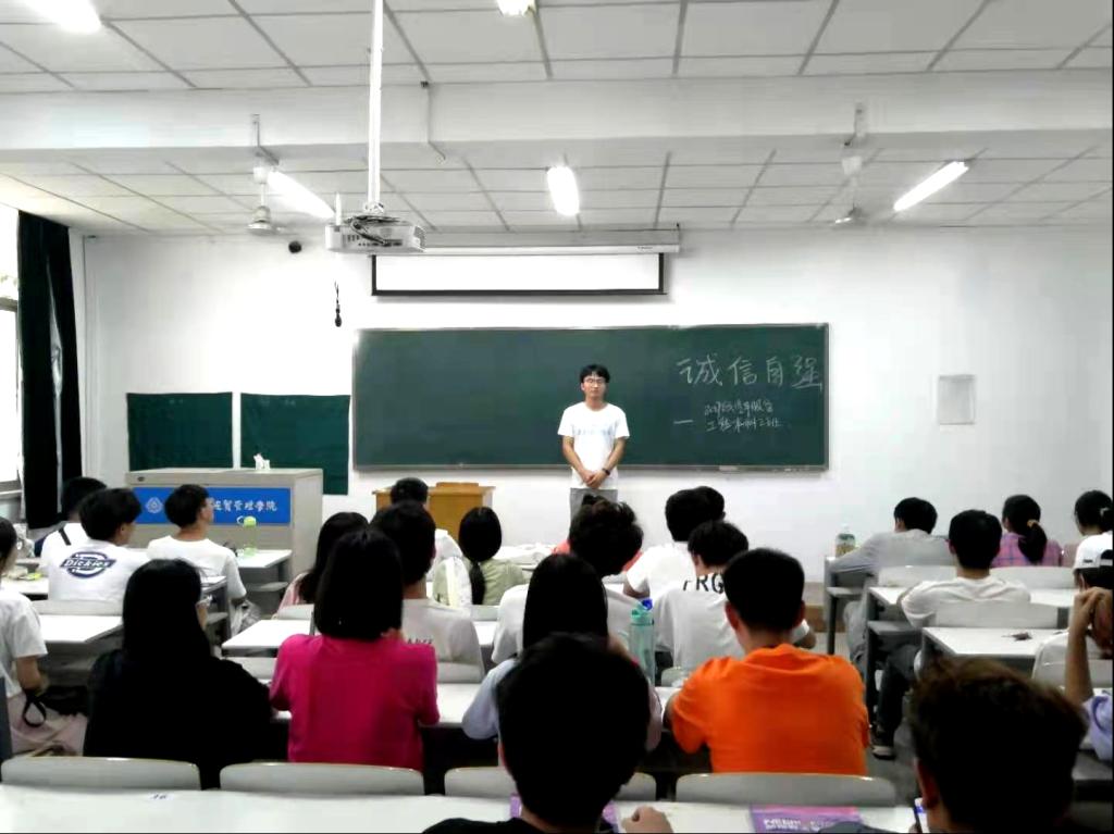 随着期末考试的临近,为了响应好学月学风建设主题的号召,使考试顺利进行,端正考生的考试态度、营造良好的考试氛围、净化考场环境、严肃考试纪律,做到诚信考试、杜绝有失诚信的舞弊行为。交通管理学院组织各班级开展以“树立诚信考风,争做文明学生”的主题班会。