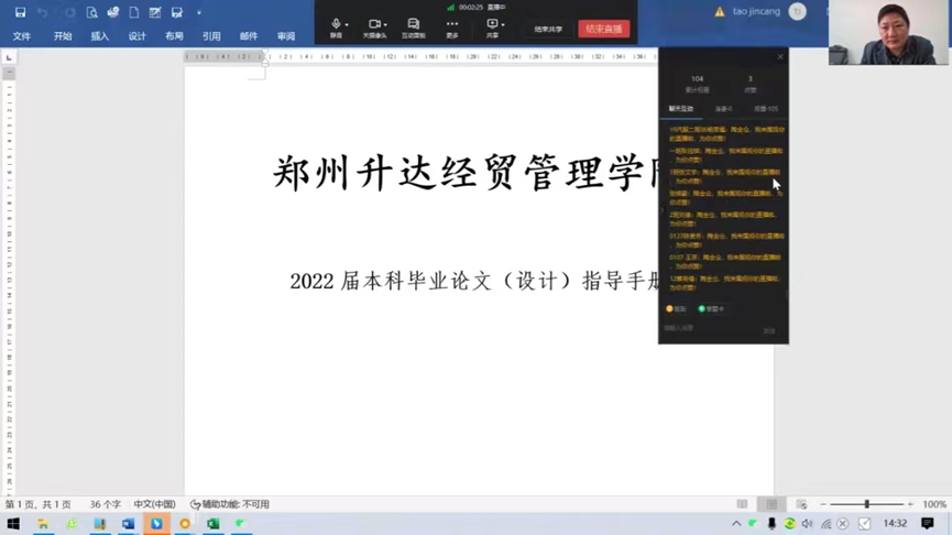 2022年10月11日下午交通管理学院于线上开展汽车服务工程专业2023届毕业设计(论文)动员暨师生交流会。会议由陶金仓老师主持。