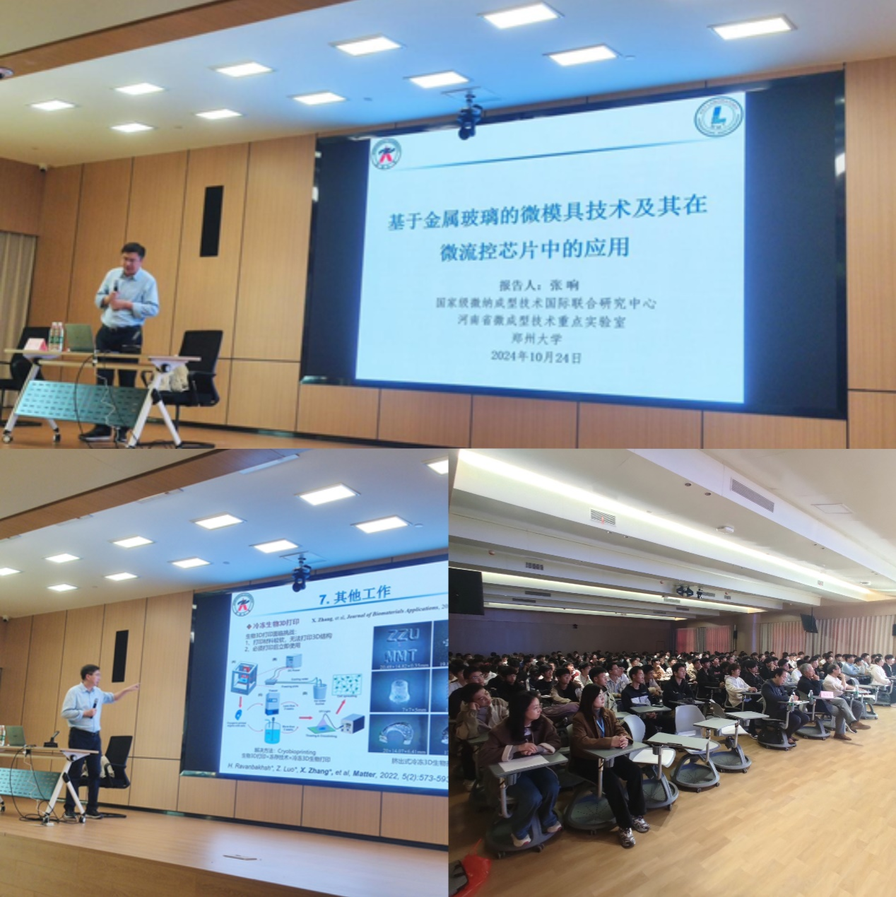 10月24日下午,郑州大学教授张响受邀在图书馆第二报告厅作题为“基于金属玻璃的微模具技术及其在微流控芯片中的应用”的学术报告,9428cn太阳集团院长张三川,全体无课教师以及24级机械设计制造及其自动化、自动化专业的学生聆听了报告。