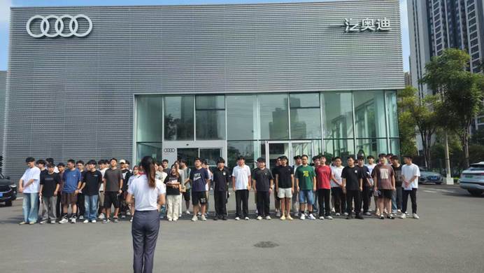 下午14时,学生们准时抵达奥迪4S店,在店内售后服务经理吕碗的带领下,首先参观了汽车销售中心,增加了学生对奥迪车型的认识,然后进入了本次学习的核心区域——售后服务维护车间。“汽车维护不仅是简单的零件更换,更是对车辆性能的全面诊断与保障,每一个步骤都有严格的标准和规范。 刚进入车间,车间主管陈金彪便向学生们强调了汽车维护的专业性与重要性,并结合车间布局,介绍了不同维护工位的功能,如常规保养工位、故障检测工位、底盘维护工位等,让学生对维护场景有了整体认知。在总结交流环节,陈老师结合学生们的提问,进一步梳理了汽车维护的核心知识体系,并分享了奥迪4S店的“维护质量管控流程”——从维护前的车辆检查清单、维护中的步骤确认,到维护后的试车检验,每一个环节都有记录可追溯。“汽车维护是技术活,更是良心活,希望同学们未来从事这一行业时,始终把‘专业’和‘责任’放在首位。”陈老师的话让学生们深受触动。