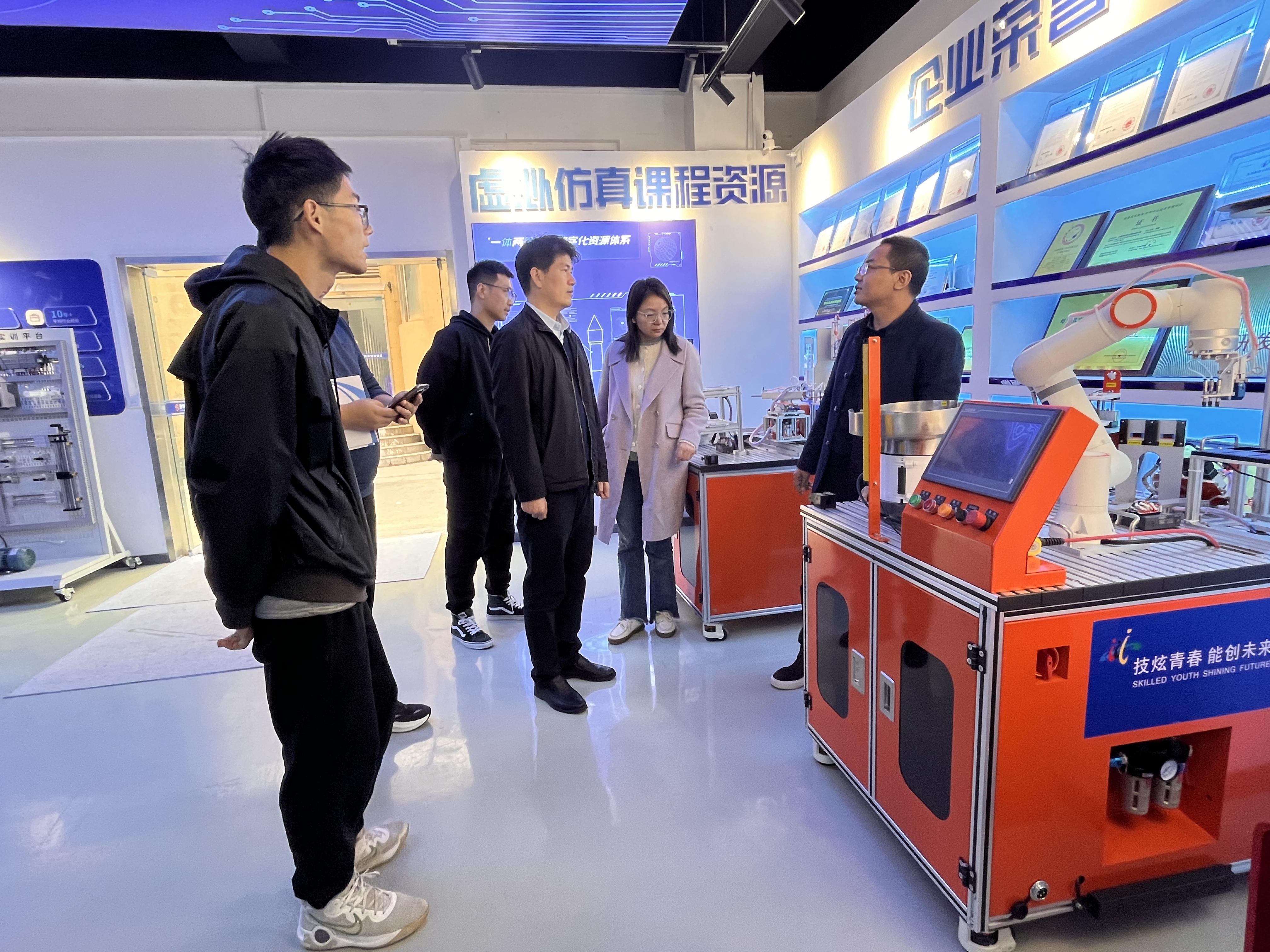 走访期间,丁向育一行深入企业智能制造展厅,详细了解了企业核心产品、创新成果、课程资源及人才需求情况。