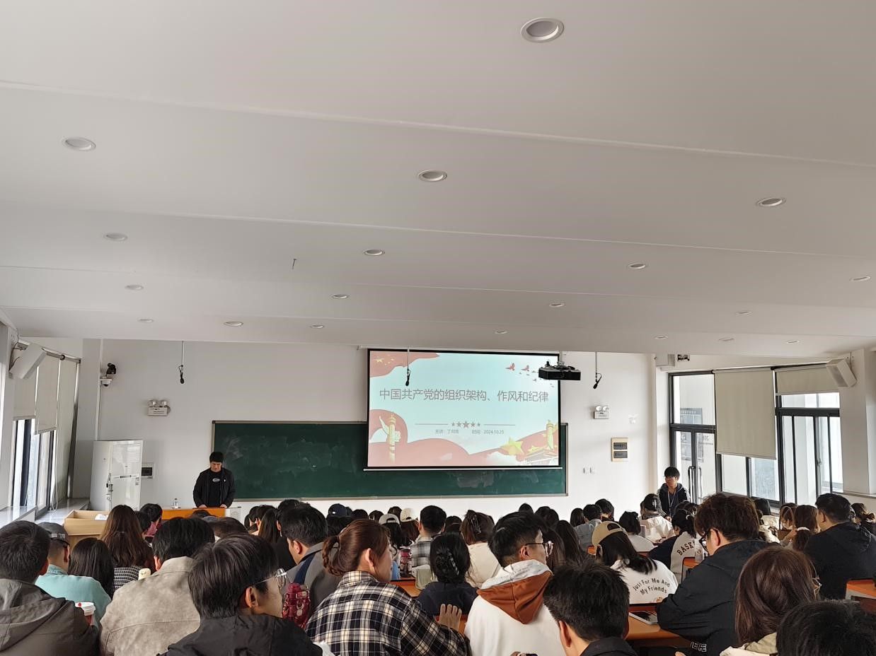 10月25日中午,9428cn太阳集团党委书记丁向育以“中国共产党的组织架构、作风和纪律”为题,在教学2号楼208教室为9428cn太阳集团、管理学院第二十期入党积极分子,拟发展对象讲授专题党课。