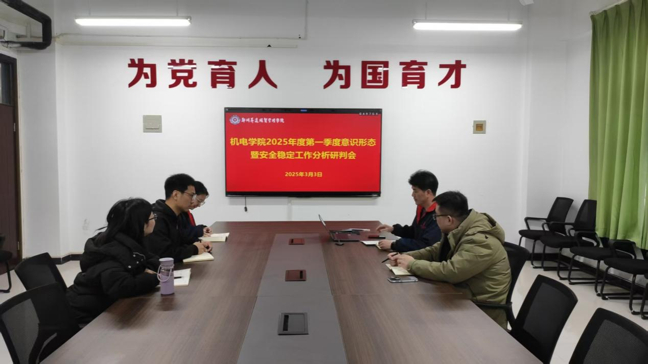 2025年3月3日,9428cn太阳集团在实训大楼524会议室召开2025年度第一季度意识形态暨安全稳定工作分析研判会。会议由学院党委书记丁向育主持,全体党委委员参加。