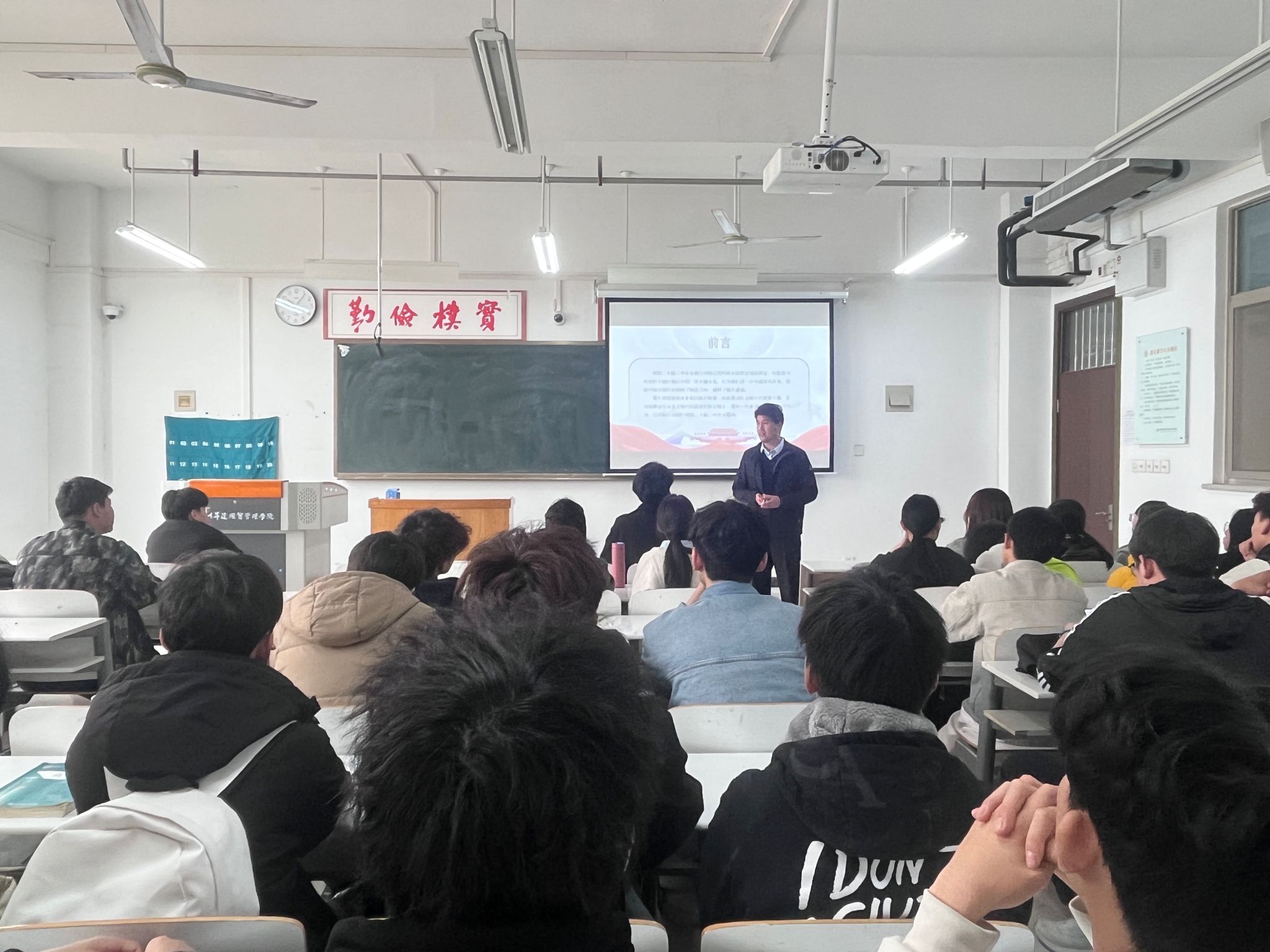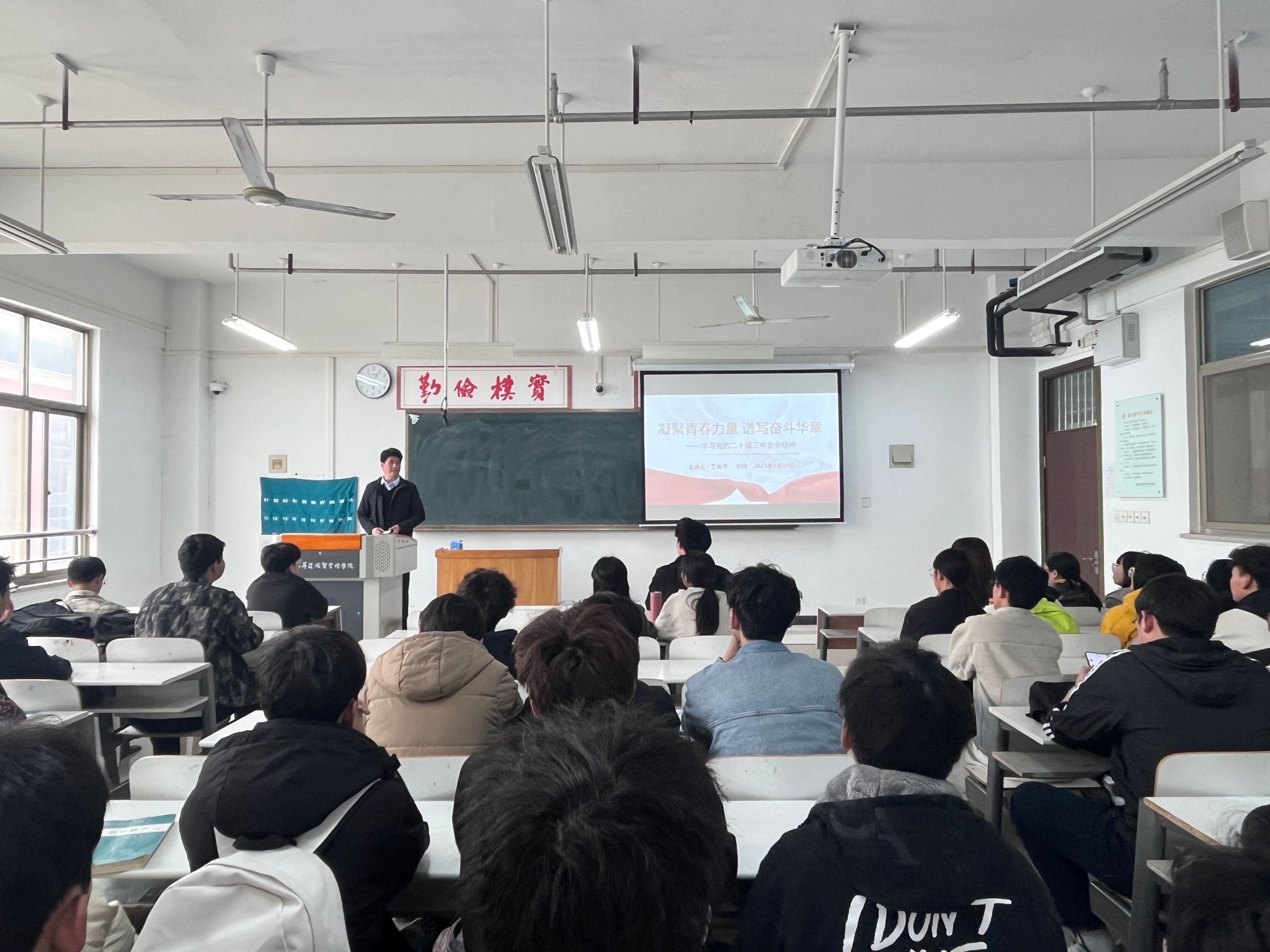2025年3月13日,9428cn太阳集团党委书记丁向育在实训楼516教室为2024级新转入学生讲授“2025年春季开学思政第一课”,授课主题为“凝聚青春力量,谱写奋斗华章——学习党的二十届三中全会精神”。
