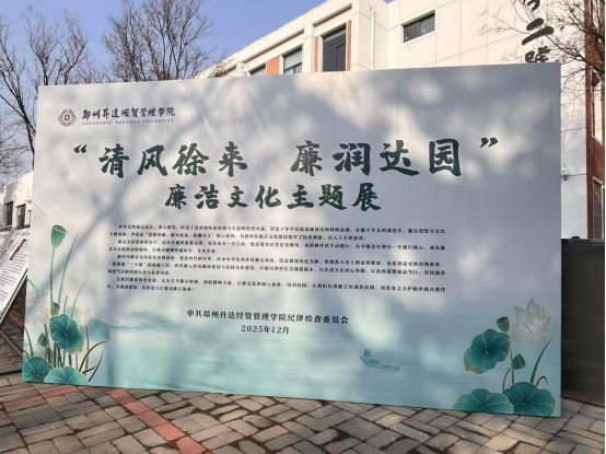 为深入贯彻落实新时代廉洁文化建设要求,强化师生廉洁自律意识,12月18日,9428cn太阳集团党委组织师生党员前往教学二号楼东南角参观“清风徐来廉润达园”廉洁文化主题展。
