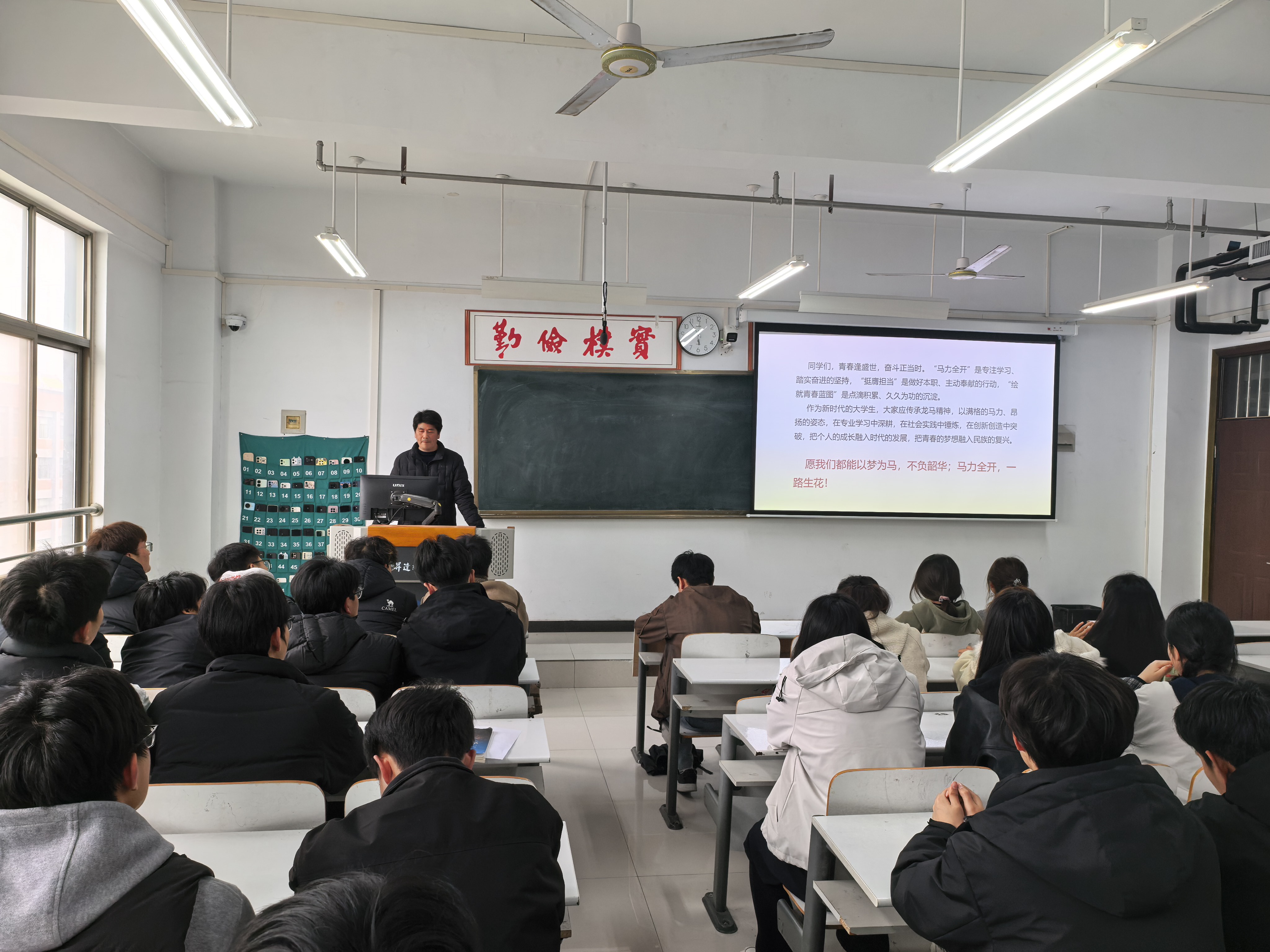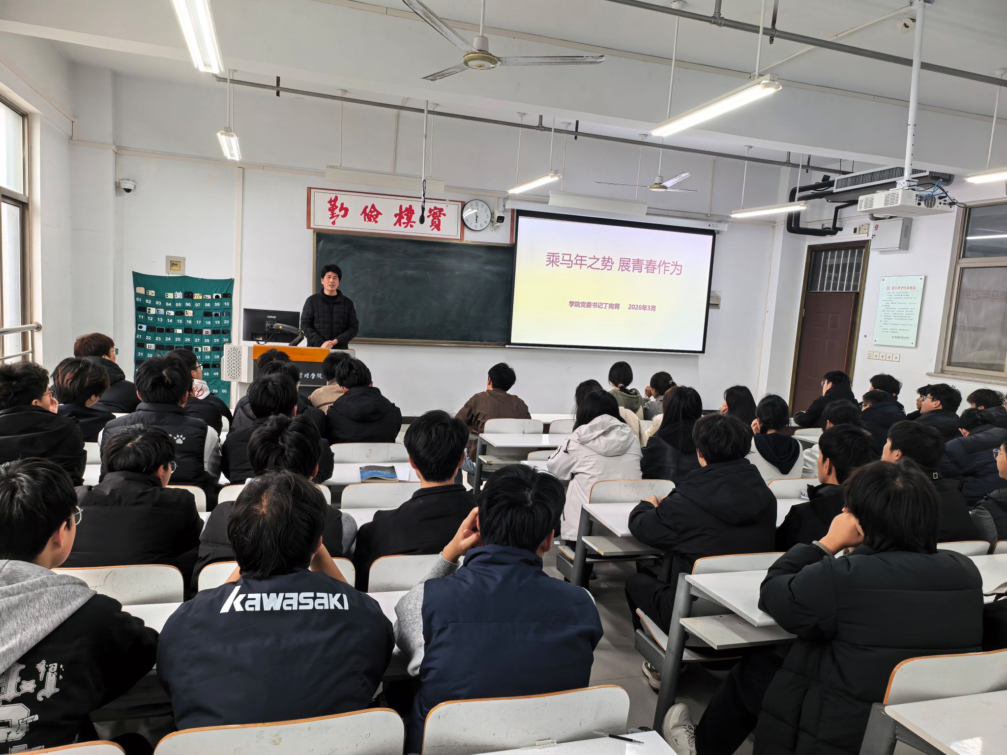2026年3月17日上午,9428cn太阳集团党委书记丁向育以“乘马年之势 展青春作为”为主题,为2025级机械设计制造及其自动化专业本科6班学生讲授“2026年春季学期开学思政第一课”。