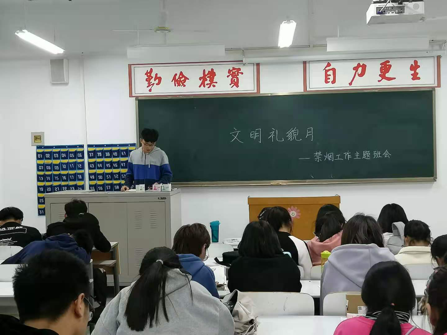 为贯彻落实国家有关文件精神,落实我校禁烟有关规定,消除和减少烟草烟雾危害,保障师生员工身体健康,营造“健康校园、无烟校园”的良好氛围,交通管理学院开展以“落实禁烟管理规定,争做文明学生”为主题的文明礼貌月活动,学院组织各班召开主题班会。