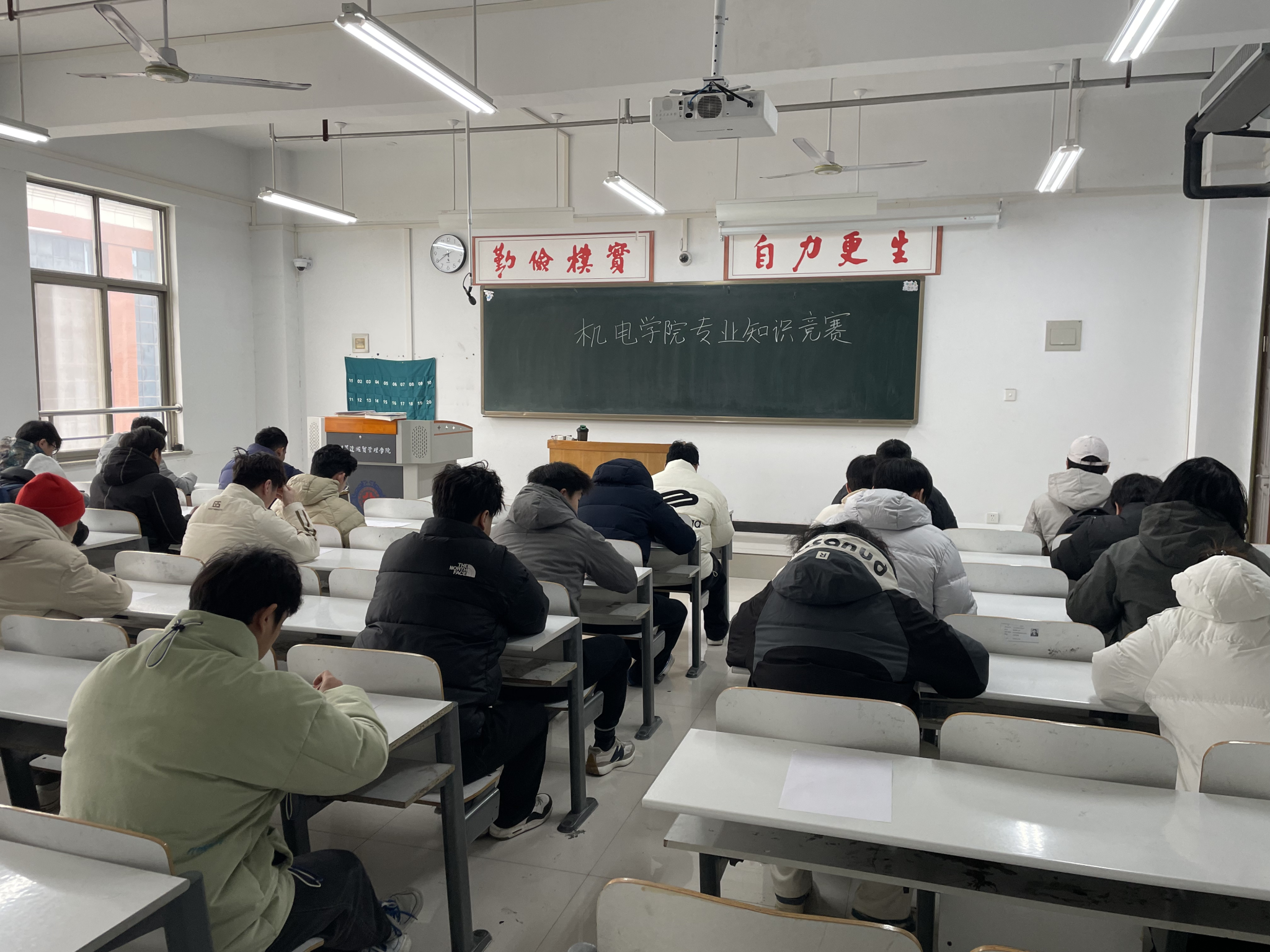 报名参加的选手于中午12:00在实训大楼515教室参加专业知识竞赛,大家认认真真答题,一个个势在必得。最终,经过专业教师评阅试卷后,评选出前五名同学。