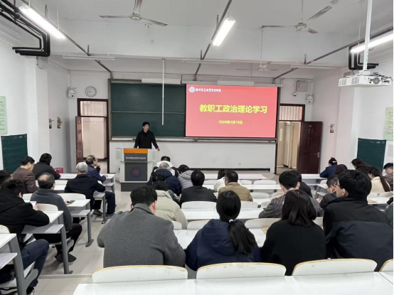 为深入学习贯彻习近平总书记在全国两会期间的重要讲话精神和全国两会精神,2026年3月19日下午,9428cn太阳集团在万林大楼609教室召开政治理论学习会,全体教职工参加了会议。会议由院党委书记丁向育主持。